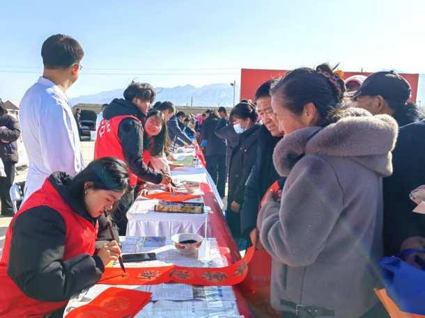 活动现场人头攒动,热闹非凡。医护志愿者耐心细致地为群众进行义诊、开展健康咨询和指导,解答群众关于养生保健、疾病预防等问题;民警结合真实案例,以通俗易懂的语言,向群众详细讲解电信网络诈骗的常见手法和防范要点,同步普及道路交通安全知识,提醒群众遵守交通规则、注意出行安全;文艺志愿者挥毫泼墨,一副副春联福字传递着新春祝福,备受群众喜爱,大家争相领取。