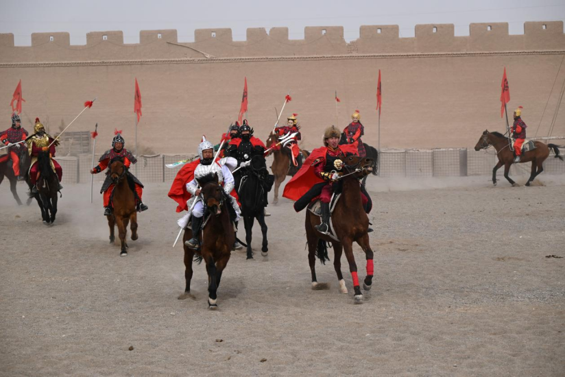 2月8日,甘肃敦煌古城大型实景马术表演紧锣密鼓地进行排练磨合。届时将于马年正月初一至十五期间正式表演,分阅兵、三英战吕布、特技表演三部分,以专业演绎与文化底蕴,将古代马术技艺实景再现,为游客奉献兼具视觉冲击与历史厚重感的新春盛宴,为文旅发展增添新亮点、新活力。(文/图 张晓亮)