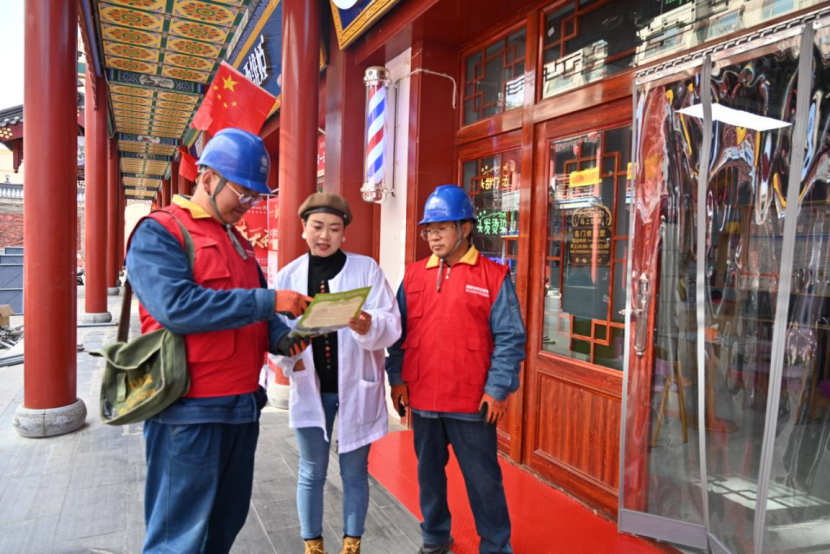 小吃城汇聚了本地特色小吃与新潮美食,电炸炉、蒸箱、冰柜、灯带等用电设备密集,春节期间日均用电负荷较平日增长超过40%。加之摊位集中、临时用电需求大,对供电可靠性提出了更高要求。为此,公司专门成立春节保电工作组,根据小吃城用电特点制定“一街区一方案”保电预案,并组织洪水供电所党员突击队与运维人员开展“拉网式”隐患排查。工作人员携带红外测温仪、局放检测仪,对小吃城及周边10千伏配电线路、环网柜、箱变等关键设备进行全面检测,重点排查线路覆冰、接点发热、私拉乱接等隐患,确保电网设备以最佳状态迎接用电高峰。同时,他们逐户走访商户后厨,协助规范用电线路、更换老旧插座,讲解大功率设备安全使用须知,从源头上筑牢用电安全防线。