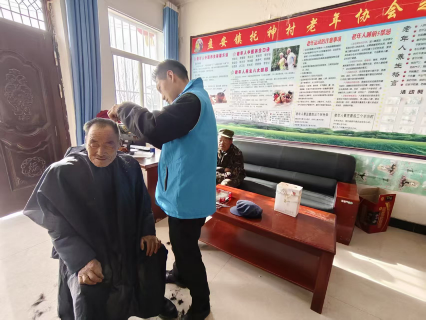 一把剪刀、一块围布,临时“爱心理发点”就这样温馨开张。志愿者们耐心又细致地为老人们修剪头发、整理仪容。部分老人平时出门不便,理发成了难事,如今足不出村就能清爽迎新年。剪去旧岁疲惫,换上新年精气神。看着镜里整洁利落的自己,老人们嘴角藏不住笑意。小小的理发服务,解决的是乡村老人最实在的“小烦恼”,传递出看得见、摸得着的贴心关怀。
