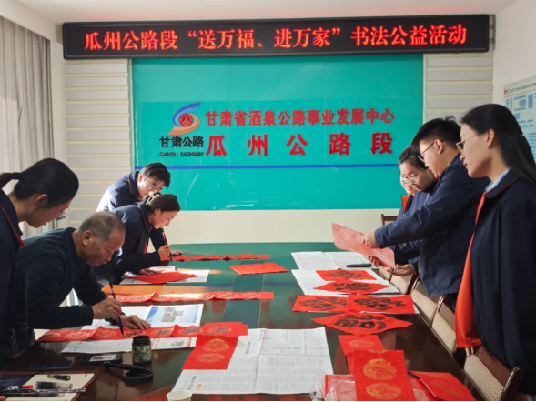活动期间,各基层工会多点发力、各具特色,让“送福”活动既有温度又有深度。瓜州公路段工会以笔墨寄深情、以祝福暖人心,专门邀请书法老师现场授课指导,不仅详细讲解书法创作技巧,还结合马年生肖文化,为职工分享春联创作思路,引导职工沉浸式体验书法创作乐趣。书法老师挥毫泼墨,手腕一转便落下一个遒劲有力的“福”字,每一副春联都将马年的吉祥寓意与奋进劲头融入笔墨之间,墨香裹挟着纸浆的淡香,为一线职工送上了别样的新春暖意。在场职工踊跃参与,纷纷亲手握笔书写心中期许,一撇一捺间尽显对新春的期盼与对美好生活的向往,“手写的才有味儿”成为大家最真切的心声。