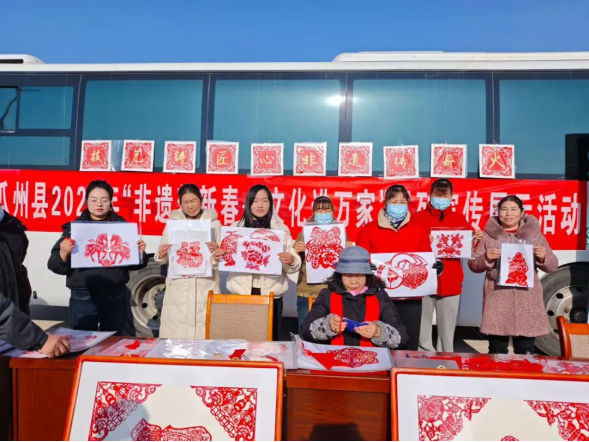 与此同时,县文旅局工会、县文联工会联动发力,在乡村集市、社区广场等多个重点区域同步设置特色文化体验区,让群众沉浸式感受中华优秀传统文化的独特魅力,推动文化惠民政策走深走实、落地生根。在书画展示与赠送区,山水、花鸟等各类书画佳作琳琅满目,楷书的端庄工整、行书的洒脱流畅尽显传统文化的深厚韵味,书画家们凝神挥毫、笔耕不辍,将新春的美好祝福与真挚期许融入笔端,免费为过往群众书写春联、福字。围观群众有序等候、争相领取,现场墨香与欢声笑语交织相融,暖意融融、年味十足,生动展现了新春佳节的喜庆祥和。