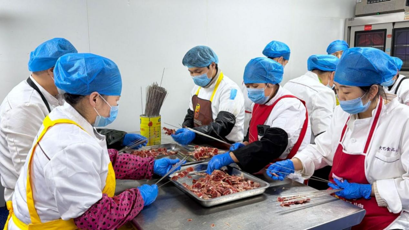 走进兰州火吧食品有限责任公司的生产车间,一股浓郁的椒香扑鼻而来,工人们身着统一工装,手法娴熟地进行着切配、串制。在穿串间,新鲜的羊肉、羊肚、肉筋、鸡胗等食材经过精准切割,被快速穿制成标准的肉串。