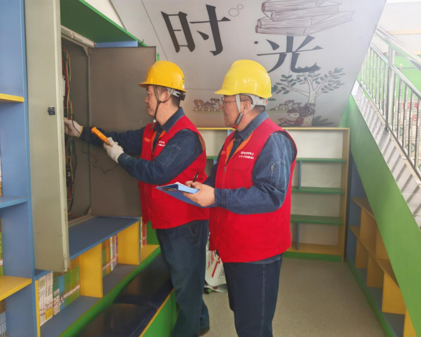 除了课堂教学,志愿者们还对校园配电设施、教室线路、照明灯具、电源插座、教学电器等开展全方位“安全体检”。志愿者们使用专业仪器,仔细检查线路绝缘层是否破损、开关插座是否松动、配电设备是否运行正常,重点排查私拉乱接、超负荷用电、线路老化等安全隐患,对现场发现的问题逐一登记、现场指导、协助整改,并向学校后勤管理人员讲解日常用电检查和应急处置方法,全面筑牢校园用电安全防线。