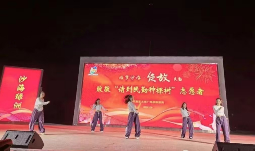 一棵树,一抹绿;一颗心,一份情。此次文艺演出,以文化为桥、以绿色为约,把生态理念融入文艺表演,把志愿精神化作欢声笑语,让“请到民勤种棵树”更加深入人心。