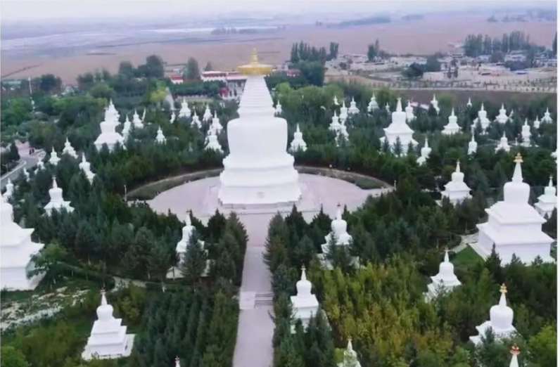 白塔寺景区的塔林是氛围感拍摄的绝佳点位,航拍视角下,塔林与蓝天、祁连山脉相映成景,视觉符号鲜明,雪后景致更具史诗感。该点位适配古风、纪实等多种拍摄风格,短视频转场拍摄效果出众,能充分满足抖音、小红书等社交平台的内容创作需求。
