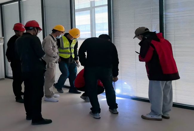 在技术服务指导过程中,服务小组紧密结合项目建设进度与特点,聚焦项目建设全流程关键环节,以消防验收核心要点为导向,通过“座谈交流+资料核查+实地查验”相结合的方式,逐一开展政策解读与实操指导。一是与建设、施工、监理单位负责人现场座谈交流,通过查阅图纸、问询沟通、政策讲解等方式,从施工工艺、消防产品及燃烧性能材料的进场复检与使用、资料完整性等方面提供专业指导,帮助项目方掌握消防标准与技术要点,熟悉审批要件及消防验收申请流程,完善消防验收申请资料。二是针对项目施工复杂、技术难度高的特点,服务小组结合项目实际情况,梳理关键施工节点,围绕防火防烟分区设置、消防车通道及登高操作场地规划、安全疏散设计、电气线路布置、装修防火要求以及各类消防设施安装等关键环节,开展全面细致的预检与研判。通过“一对一”讲解、逐项答疑,明确标准要求、厘清整改路径,提前识别并预警后期正式验收中可能出现的风险点,助力企业在施工阶段一次性完成整改,避免后期返工与成本浪费。