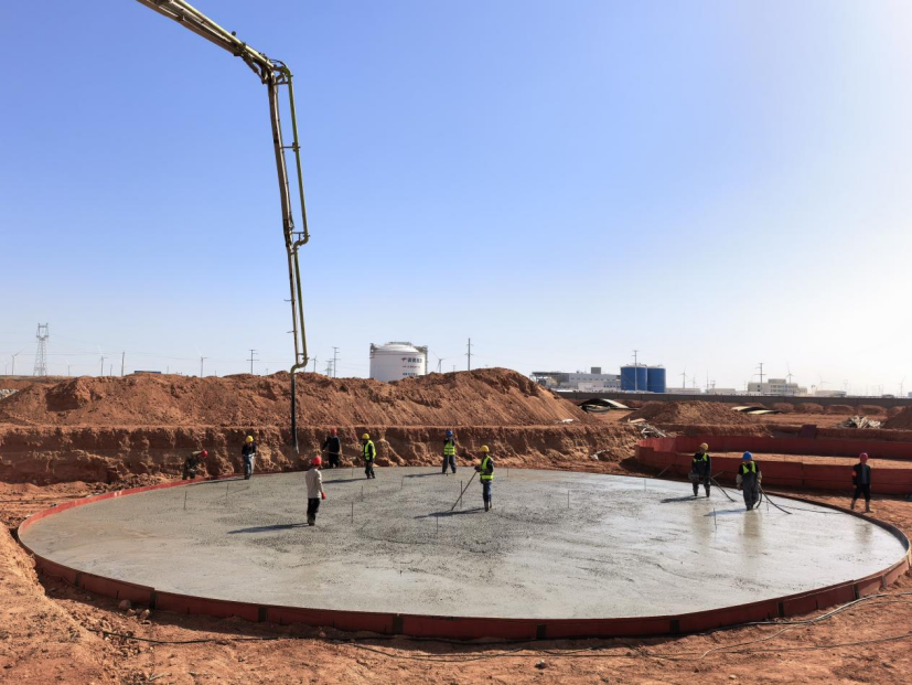 在甘肃沃陇工贸有限公司20万吨/年焦油综合利用项目现场,一派热火朝天的建设景象。土建施工紧张有序,地基浇灌稳步推进,施工人员各司其职、协同配合,大型机械来回穿梭作业,施工团队全力以赴推动项目建设提质提速。该项目位于瓜州县柳沟煤化工产业园,投产后将进一步完善县域炭黑产业布局,延伸产业链条。
