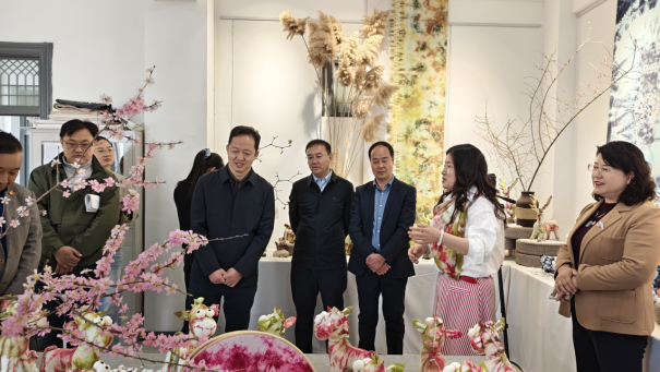 揭牌仪式现场,嘉宾们一同参观了工作室的扎染作品展览,一幅幅色彩斑斓、图案各异的扎染作品,通过纱、线、绳等工具的捆扎,搭配板蓝根、艾蒿等天然草本染料浸染而成,深浅不均的色晕与独特皱印尽显非遗魅力,既有传统扎染的经典韵味,又融入了靖远本土文化。