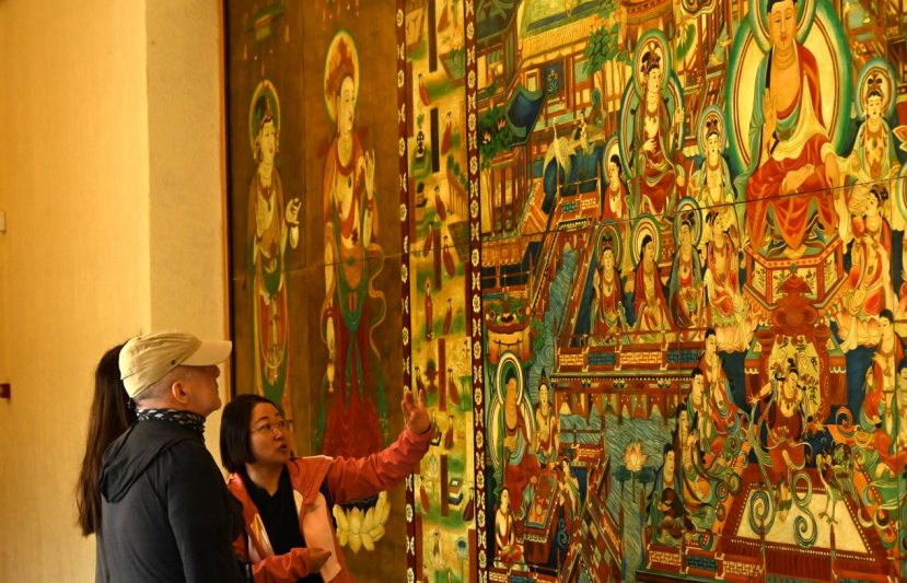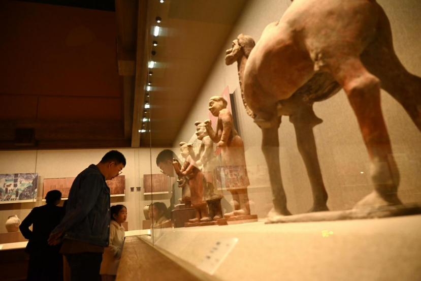 清明节假期,游客走进甘肃省敦煌市博物馆,学习历史知识,感受文化魅力。(文/图 张晓亮)