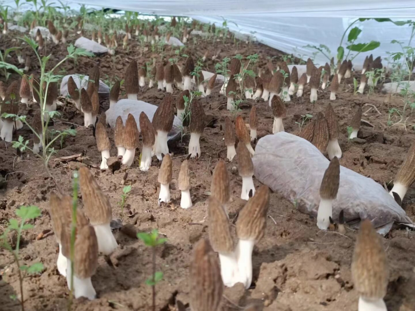 梁坪村大棚里的羊肚菌长势喜人