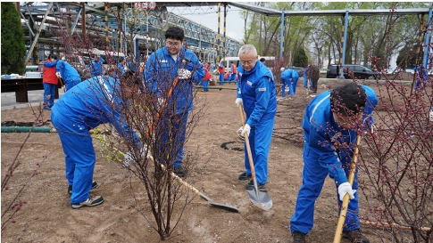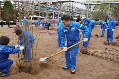 参加植树活动的干部员工认真学习植树要领及注意事项,严格按照种植流程和标准要求,分工协作、密切配合,有序开展挖坑、栽植、平整土地、修整树盘、浇水等环节,栽种了金叶复叶槭、红梅、樱花、花石榴等各类苗木,为初春的厂区增添了勃勃生机。