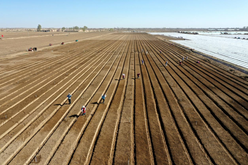 “现在我们正在全力推进起垄、播种、覆膜工作,正常情况下,每天用工量在150人左右,日均播种量可达100亩,确保按时完成春种任务,为后续丰收打下坚实基础。”许尔财补充道。