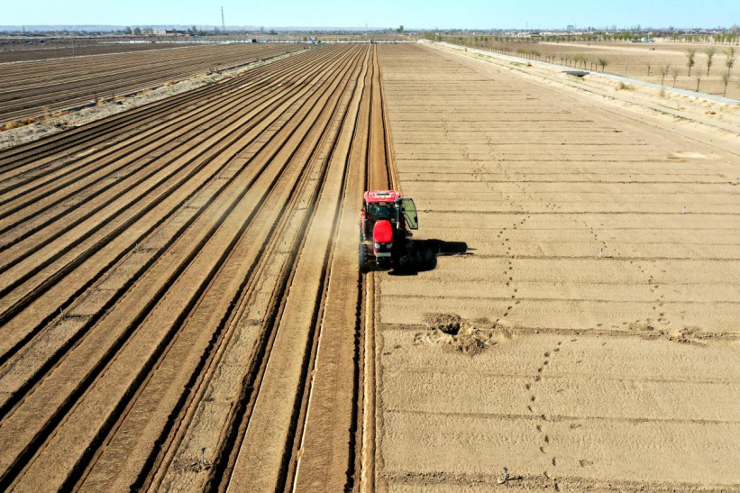 春回大地,农时渐紧。当前正值露地蔬菜播种黄金时节,民勤县苏武现代农业产业园内一派繁忙景象。百余名工人抢抓农时、分工协作,起垄、播种、覆膜等工序有条不紊,田间地头处处是热火朝天的春耕图景。