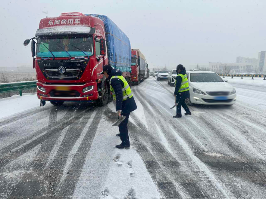 雪还没铺满地,融雪剂预撒作业已经开始了。他们心里清楚,抢在路面结冰前撒下去,比结冰后再补救要管用得多。一辆辆撒布车驶上路段,融雪剂均匀洒落,在车灯的光柱里闪着细碎的光。桥梁、隧道、背阴口、长大下坡……这些易结冰的关键部位,每一处都被重点标注、重点盯防。除雪设备科学调度,除雪车在最前方行驶,滚刷飞速旋转,将积雪甩向路边;融雪剂撒布车紧随其后,精准补撒。机械为主、人工为辅,梯队作业,环环相扣。