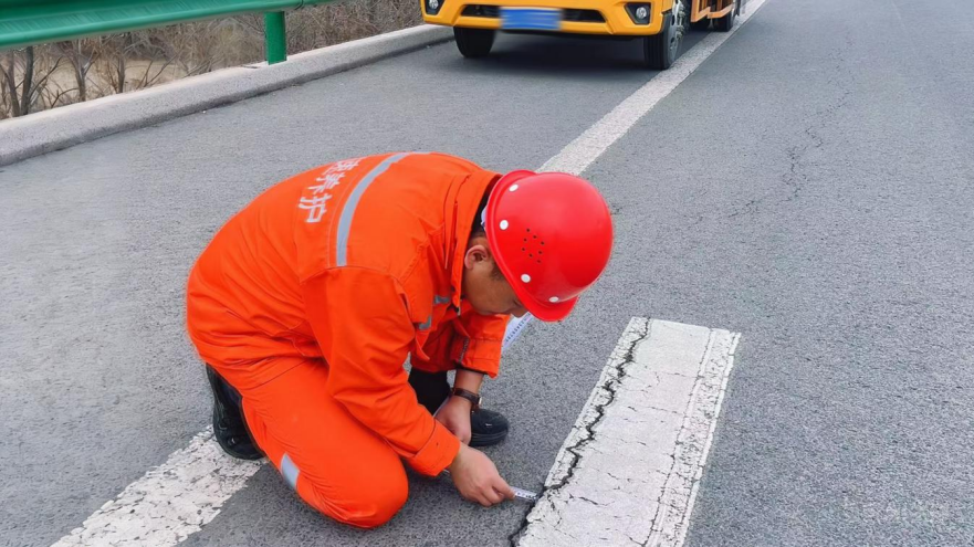 冻融交替间,裂缝悄无声息地爬上路面,路边的野草也开始冒头了,这是苏醒的季节,也是最需要“修补”的季节。养护队员小李趴在路面上,用卷尺一寸一寸地测量裂缝的宽度和深度。“春天不补,夏天成坑。”他一边记录一边说。我拍下他起身时艰难扶腰的样子,拍下他填完最后一道裂缝后站在路边眺望远方的神情,那眼神里,有一种只有养护人才懂的踏实。