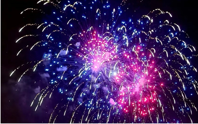璀璨绚烂的烟花与城市的夜景、群众的欢声笑语交相辉映。不同色彩、不同造型、不同声响的焰火组成诗的意境、花的海洋、美的赞歌,一张张笑脸上写满幸福和喜悦。大家纷纷举起手机记录美丽时刻,在五光十色的焰火中憧憬新年新气象,在欢歌笑语中礼赞新时代。