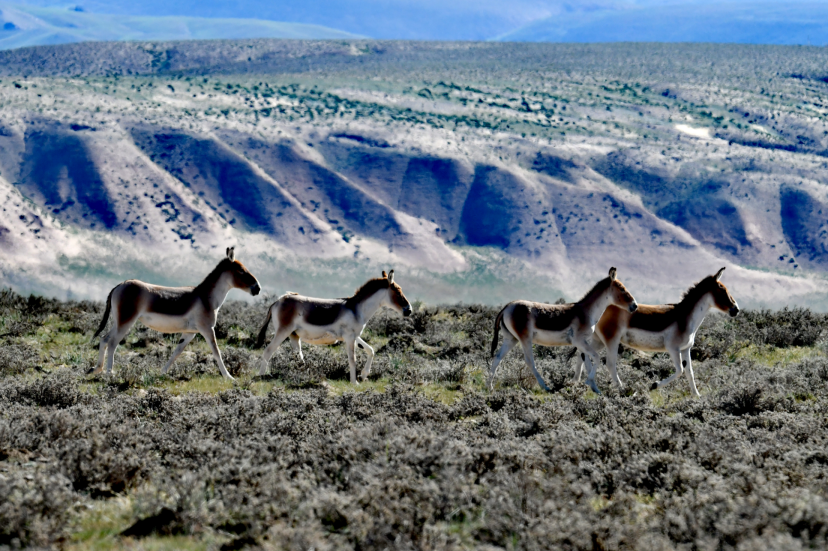肃北盐池湾:藏野驴高原嬉戏 尽显生态活力
