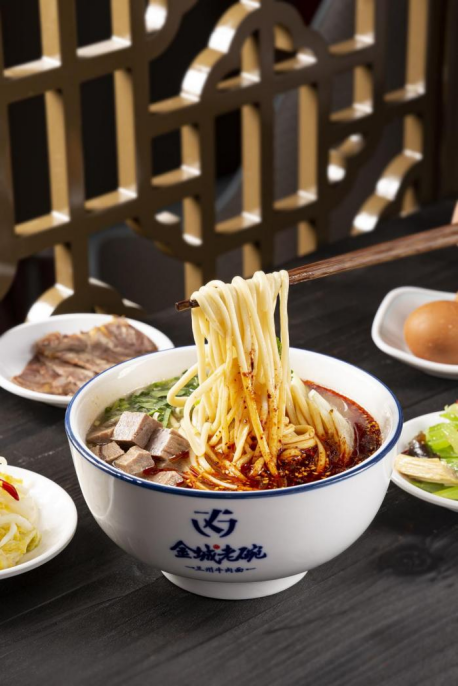 “金城”二字溯源兰州历史旧称,“老碗”之意坚守传统工艺,金城老碗的命名本身就是对陇原文化的深情告白。从和面醒面的时序把控到牛骨熬汤的火候拿捏,品牌始终延续老匠人代代相传的技艺精髓,8种可选面型更将“一清二白三红四绿五黄”的正宗标准落到实处。这种对本味的坚守,恰与兰州牛肉拉面作为黄河文化符号的内涵一脉相承,呼应了兰州牛肉拉面IP指数持续攀升背后的文化认同。