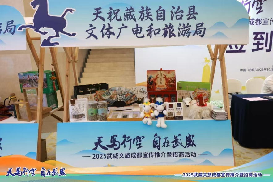 中国甘肃网11月2日讯(西北角·中国甘肃网记者 张振国)10月31日,天祝县文体广电旅游局精彩亮相“天马行空 自在武威——2025武威文旅成都宣传推介暨招商活动”。