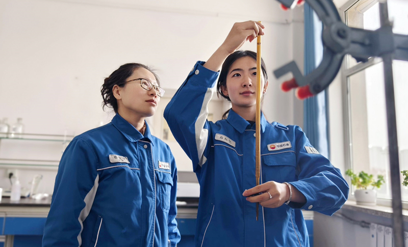 质量检验中心员工在进行实验比对(兰州石化公司供图)
