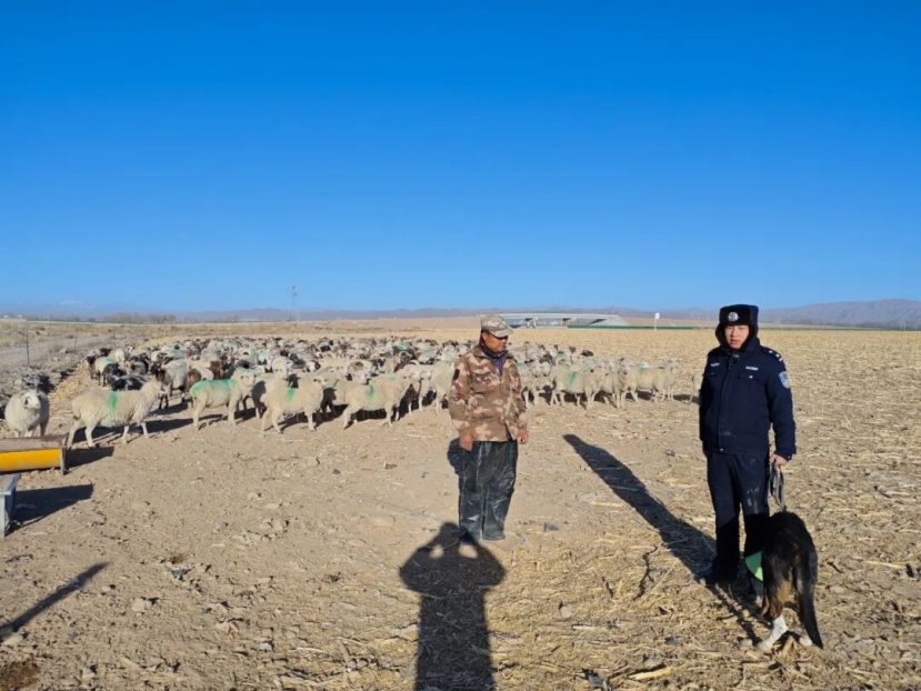 在祁连山北麓的永昌县,养殖业是民生之本。2021年冬,城关镇49只羊失踪案,首次让“雷神”的追踪天赋惊艳众人。彼时刚服役一年半的它,面对混杂着300多头牲畜蹄印的草场,仅用6小时便锁定目标。自此,这个“四足警员”成为辖区养殖户心中的“定心丸”。