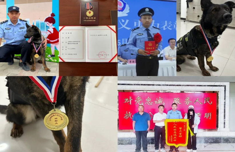 走进永昌县公安局刑侦大队,荣誉墙上“2023年度全国功勋犬”与“公安部成绩突出个人”证书相映生辉。