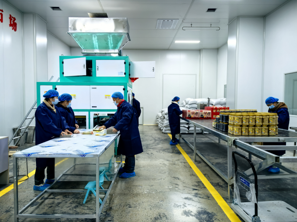 踏入靖禾农业公司占地1800平方米的生产车间,并没有预想中的粉尘与喧嚣。全封闭的自动化生产线高速运转,净化车间通过科学分区实现全程无菌化加工,先进设备在保障生产效率的同时,最大程度保留了食材的天然营养与纯正口感。