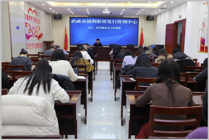 中心提前谋划,召开春节前安全工作部署会议,传达学习省、市安全生产和消防安全相关文件精神及通知要求,明确春节期间值班值守、隐患排查、应急处置等重点工作。会议强调,全体干部职工要提高政治站位,始终将安全工作放在首位,摒弃麻痹侥幸心理,以“时时放心不下”的责任感,抓实抓细各项安全防范措施,层层压实安全责任,确保节日期间福彩领域安全稳定。