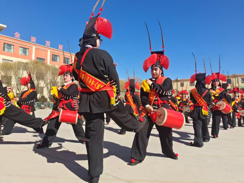 凉州攻鼓子的表演极具视觉冲击力。数十名鼓手组成方阵,在领鼓的指挥下变换队形,鼓点时而如雷霆万钧,时而如疾风骤雨。表演者腾跃旋转,鼓槌翻飞,红绸飘舞,配合震天的呐喊声,营造出金戈铁马、气吞山河的壮观场面。这种源自古代军阵的舞蹈形式,完美诠释了西北人民粗犷豪迈的性格特征和昂扬向上的精神风貌。