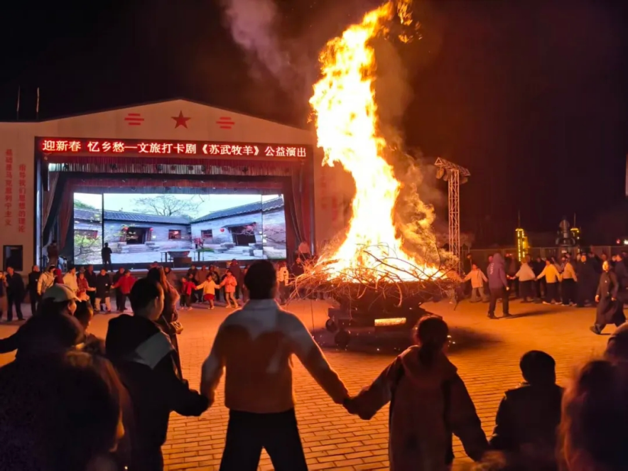 中国甘肃网2月24日讯(西北角·中国甘肃网记者 张振国)2月23日(正月初七)晚,以“城乡同乐,家国同春”为主题的文旅打卡剧《苏武牧羊》暨迎新春篝火晚会在民勤乡村记忆博物馆圆满落下帷幕。