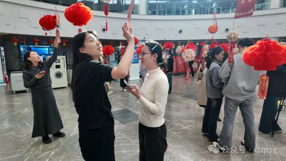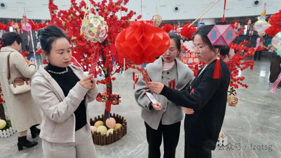 现场还设置了“走马观花”打卡区,背景墙、许愿树前人头攒动。读者们手持刚刚赢取的花灯,拍照留念并分享至朋友圈,“月上柳梢头 人约图书馆”的话题迅速升温,让这场书香元宵在线上也“火”了一把。