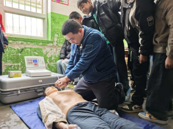 同时,为了让同学们掌握实用急救技能,驻村帮扶工作队与供电所工作人员现场开展心肺复苏实操教学。借助人体模型,分步演示胸外按压、开放气道、人工呼吸等关键步骤,手把手指导学生实践操作,耐心纠正动作细节。同学们认真聆听、积极参与,在沉浸式体验中掌握基础急救技能。活动还设置安全知识问答与急救实操比拼,为表现优异的学生颁发爱心书包、笔袋、文具等奖品,以趣味互动巩固学习成果。
