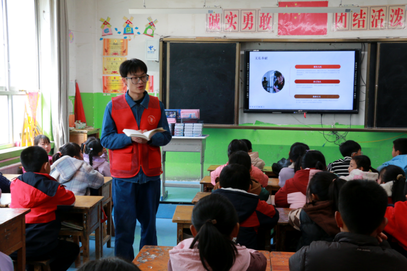 “黄河之滨”志愿者服务队队员杨小宝向同学们宣讲安全用电知识