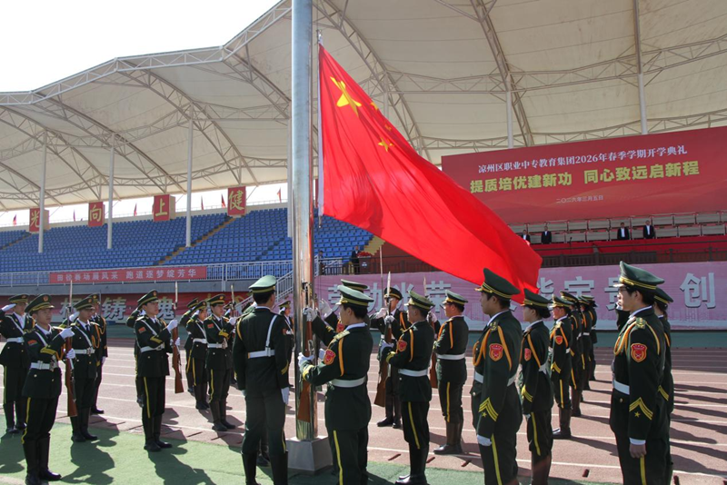 中国甘肃网3月7日讯(西北角·中国甘肃网记者 张振国) 3月5日,凉州区职业中专教育集团全体师生齐聚校体育场,举行了以“提质培优建新功 同心致远启新程”为主题的2025—2026学年第二学期开学典礼,党委书记梁紫山致辞,党委副书记、校长张生文主持典礼。
