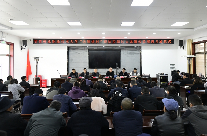 3月30日,甘肃林业职业技术大学2026年“送培进村”帮扶麦积区五龙镇公益培训班开班。学校党委委员、副校长史万琼出席并讲话,五龙镇镇长巩会文主持开班仪式。