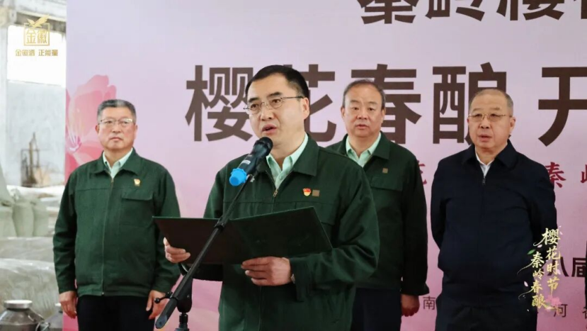上午9点,开酿仪式在酿酒一车间举行。金徽酒副总裁唐云在致辞中强调:“每年樱花盛放、春和景明之时,金徽人都会如期举办‘樱花时节·秦岭春酿’系列活动,恭祭酒神、启封春酿、典藏美好。这既是对千年酿酒技艺的坚守与传承,也是对传统酒礼文化的弘扬与创新,更是持续擦亮‘绽放秦岭深处的文化IP盛宴’、深化消费者体验的重要载体。我们始终以敬畏之心对待每一粒粮食、以严谨之心恪守每一道工序,以匠心酿造‘绵甜润雅、饮后轻松’的生态美酒,让品质成为金徽酒最坚实的底气。”
